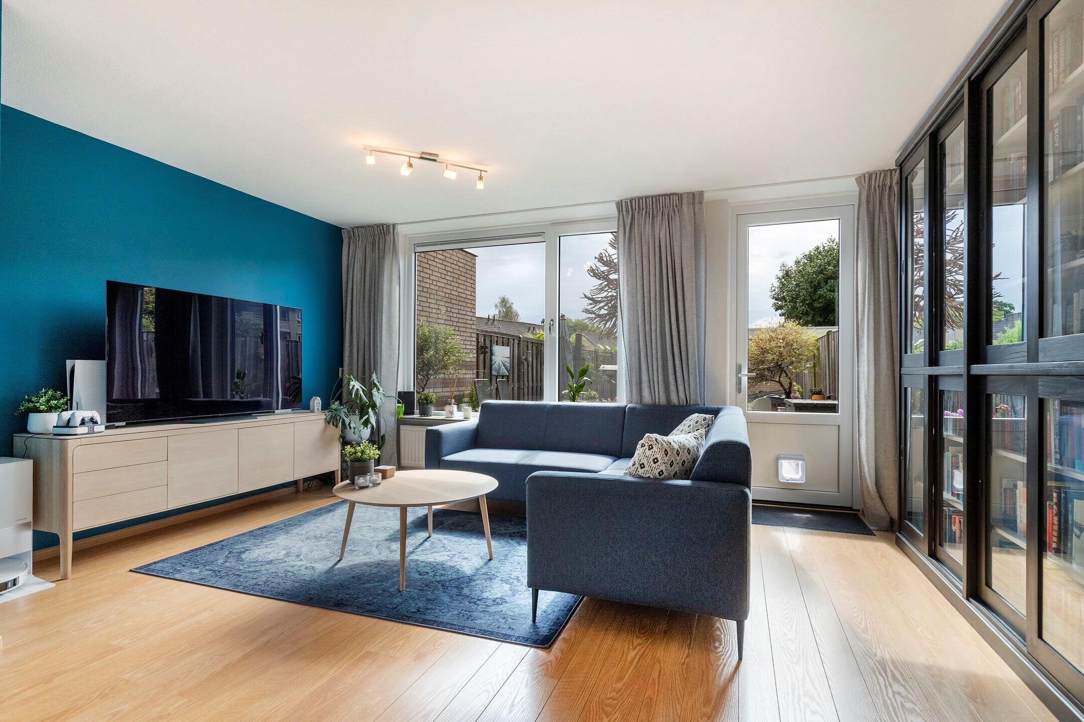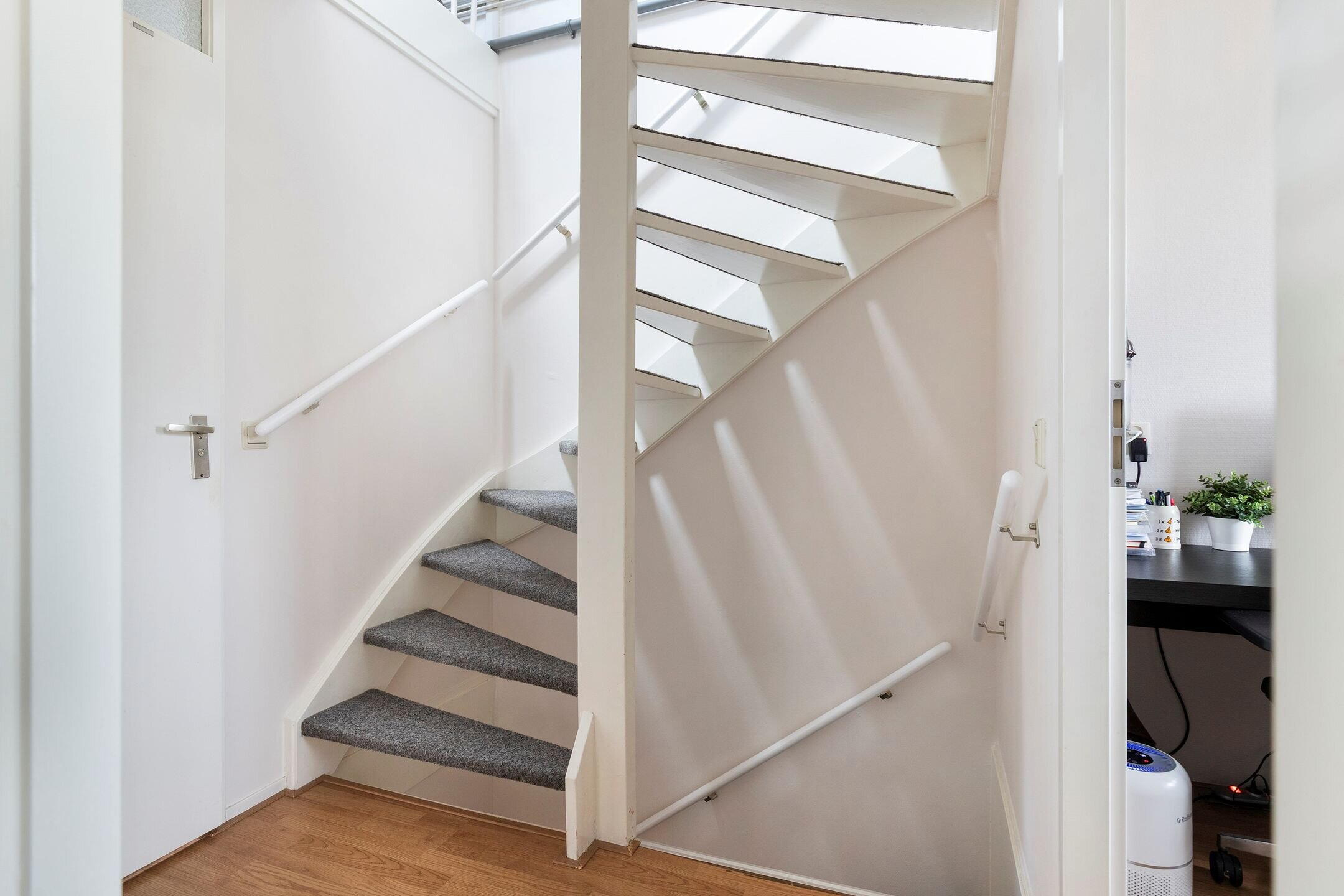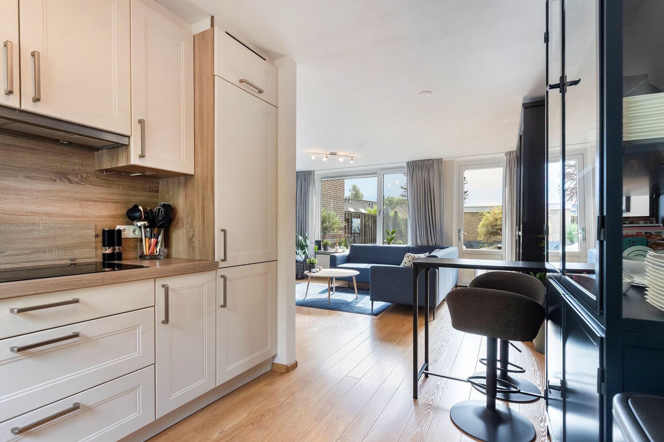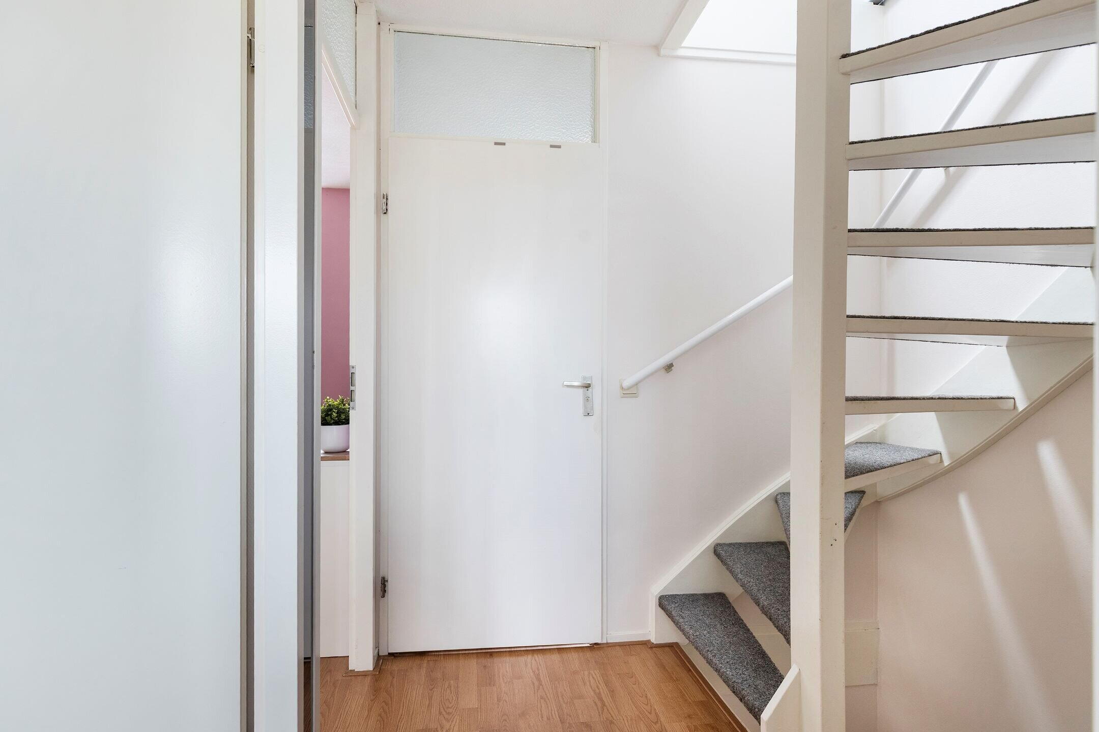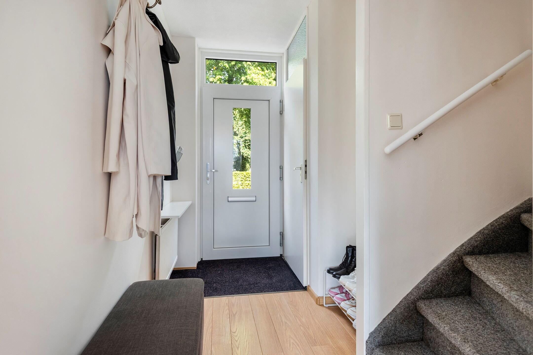 Entree, hal met vernieuwde meterkast (2021), toiletruimte en trapopgang. De lichte woonkamer beschikt over grote raampartijen en prettig contact met de achtertuin, wat zorgt voor veel daglicht en een aangename woonbeleving.