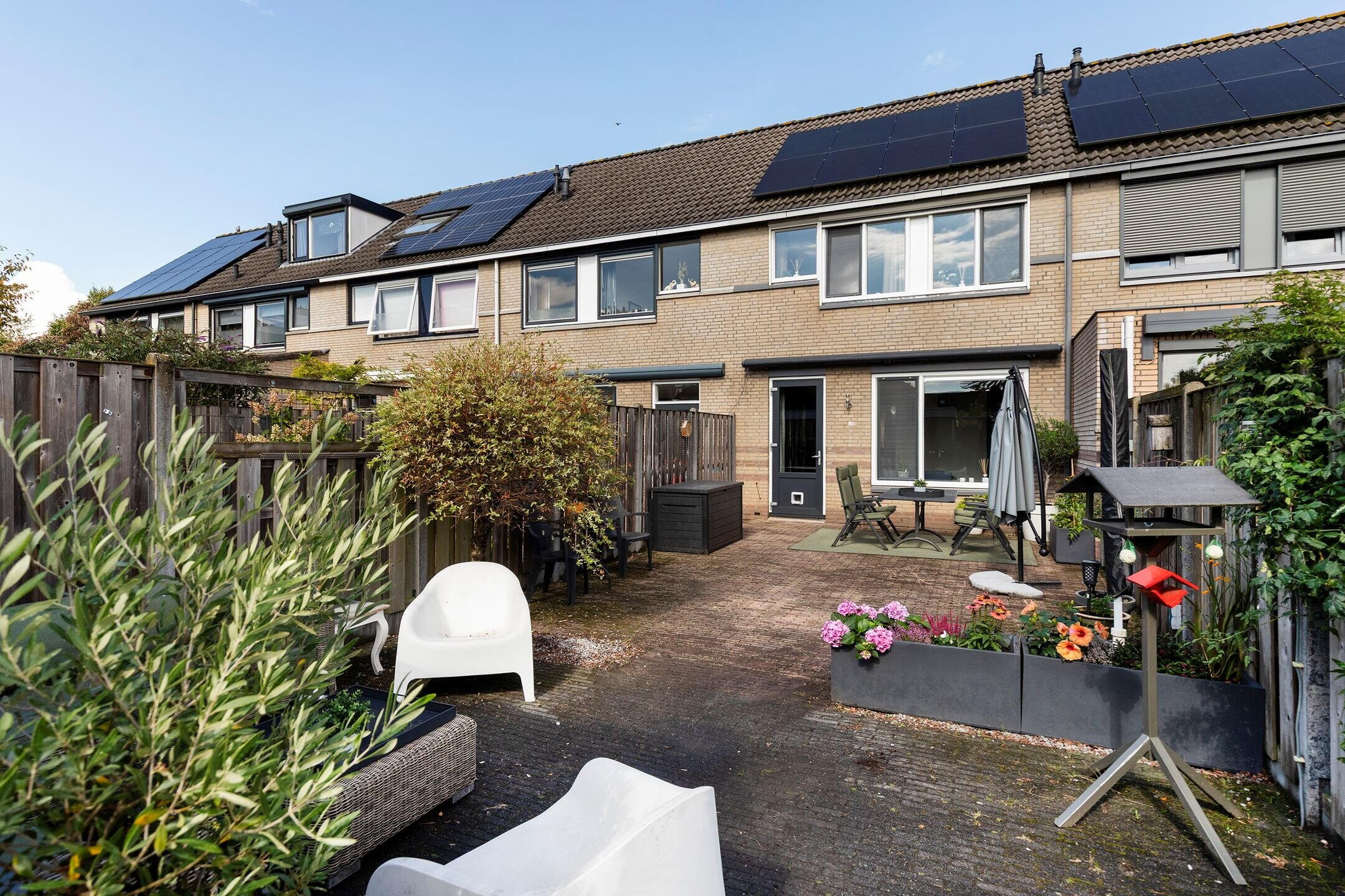 De achtertuin is ruim en zonnig gelegen en beschikt over een praktische achterom. Een fijne buitenruimte met voldoende mogelijkheden voor een terras, speelruimte of groenvoorziening.
